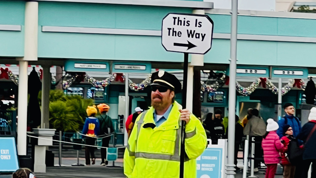 As we made our way toward the entrance, I had one of those early trip moments that immediately sets the tone for the day. A security guard was holding a sign that said, “This is the way.” I could not help but laugh. That was the perfect way to kick off a Hollywood Studios visit that was mainly built around finally experiencing Galaxy’s Edge.
