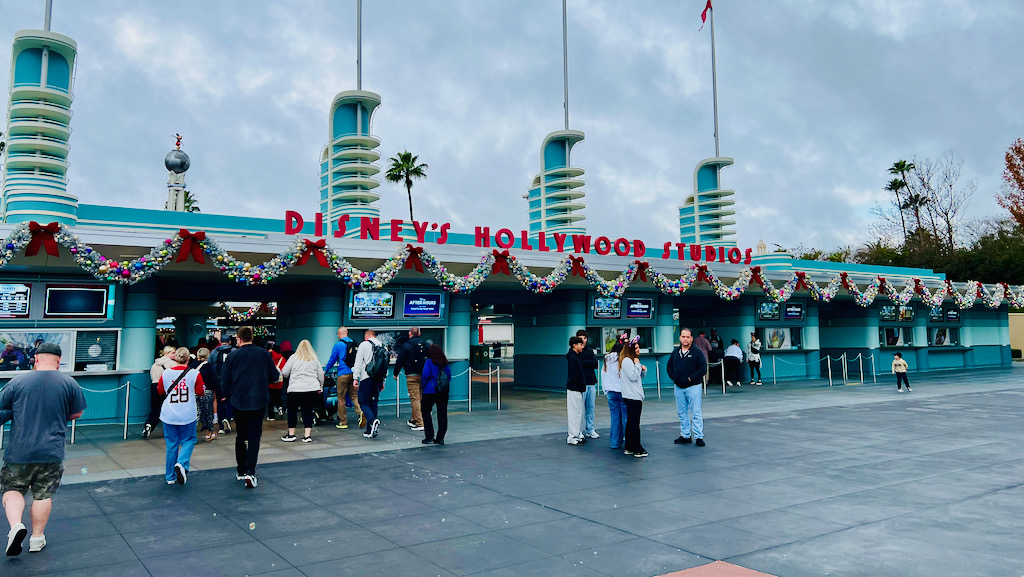 Once we arrived at the parking gate for Disney’s Hollywood Studios, one of the first things I noticed was that the Christmas decorations were still up even though it was already a few weeks after the holiday. That caught my attention right away. It felt a little unexpected at first, but it made more sense knowing Walt Disney World Marathon Weekend had just wrapped up the weekend before. Disney was clearly in that in-between phase of still transitioning out of the holiday season.