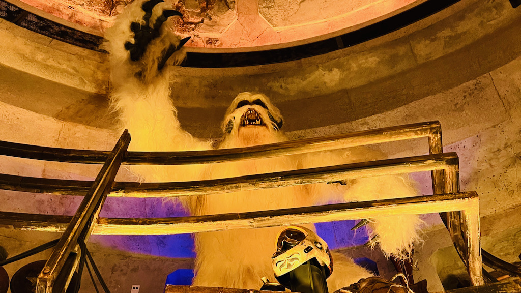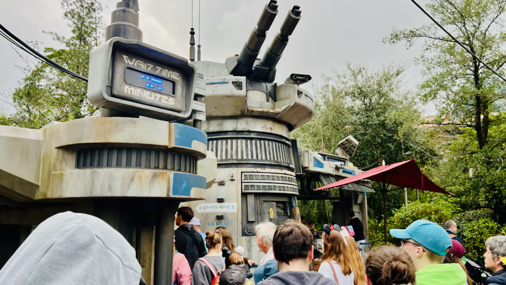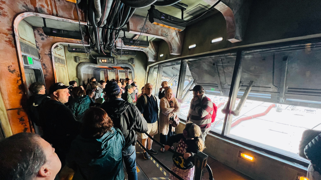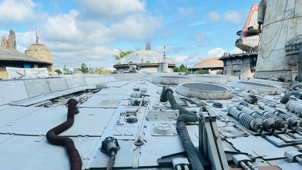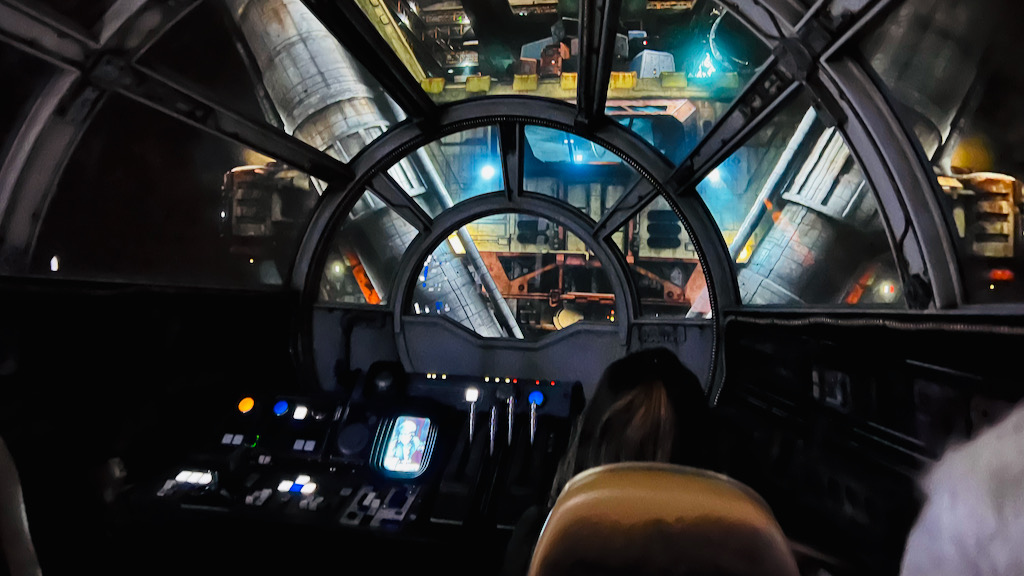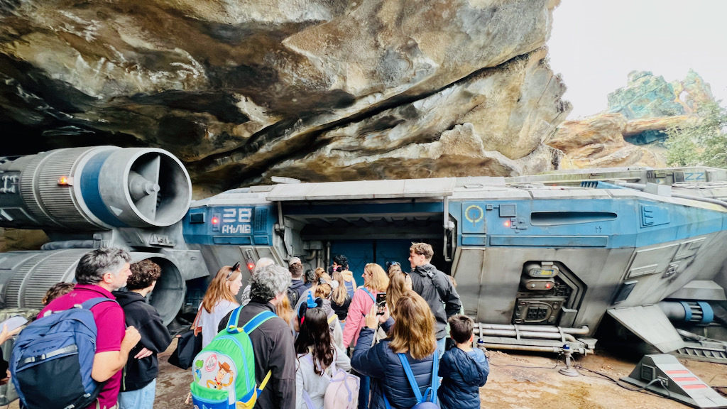 We jumped right into the queue for Smugglers Run while the posted wait was around 25 minutes, which felt like a great time to take advantage before the crowds got heavier. The queue is long and mostly indoors, but it is loaded with details. One of the best visual moments is when you get a look at the top of the Millennium Falcon from the queue. That alone is worth keeping your eyes peeled for.