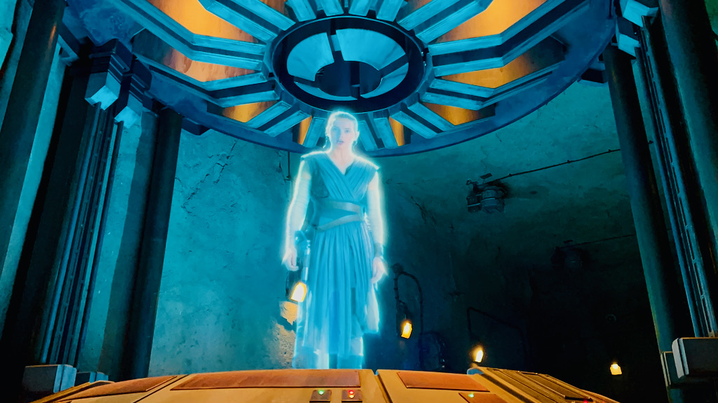 Once the pre-show starts, that is when everything really kicks into motion. BB-8 appears with his signature beeps and boops, and soon after, Rey delivers the mission briefing. A Resistance team has infiltrated a First Order Star Destroyer, and you are now part of the evacuation effort. Just like that, you go from visitor to participant.