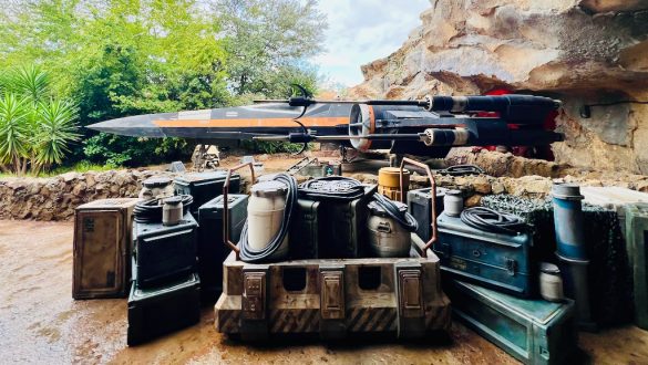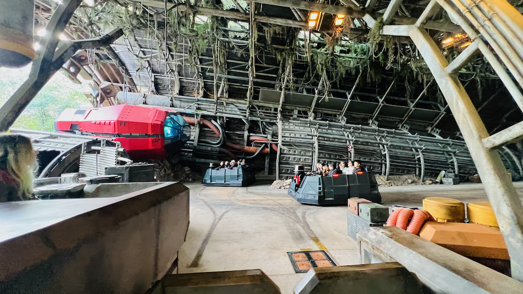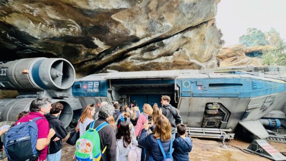 Even before you get on the attraction itself, the queue does a fantastic job of immersing you in the story. This is not just a line you stand in while waiting for the fun part to begin. The queue is part of the attraction. As you make your way toward the Resistance base, there is already a lot to take in from the outdoor portions alone. The rockwork around the base, the equipment scattered around, the ships parked outside, and the details built into the environment all make it feel like an active outpost.