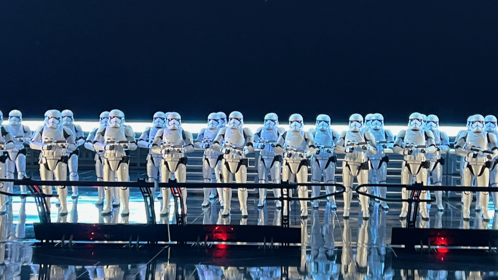 Visually, Rise of the Resistance is incredible. The scale, the set pieces, the transitions, and the overall storytelling are all top tier. If I had one critique, it would be that a few scenes could use more physical effects to match the visual intensity. When blaster shots are flying and a battle is happening all around you, a little more smoke, wind, heat, or physical impact would make those scenes hit even harder. The projections look fantastic, but there are moments where you want to feel the chaos just as much as you see it.