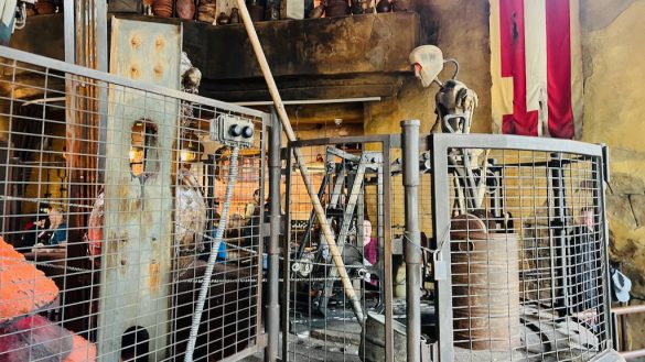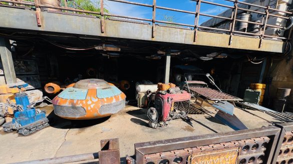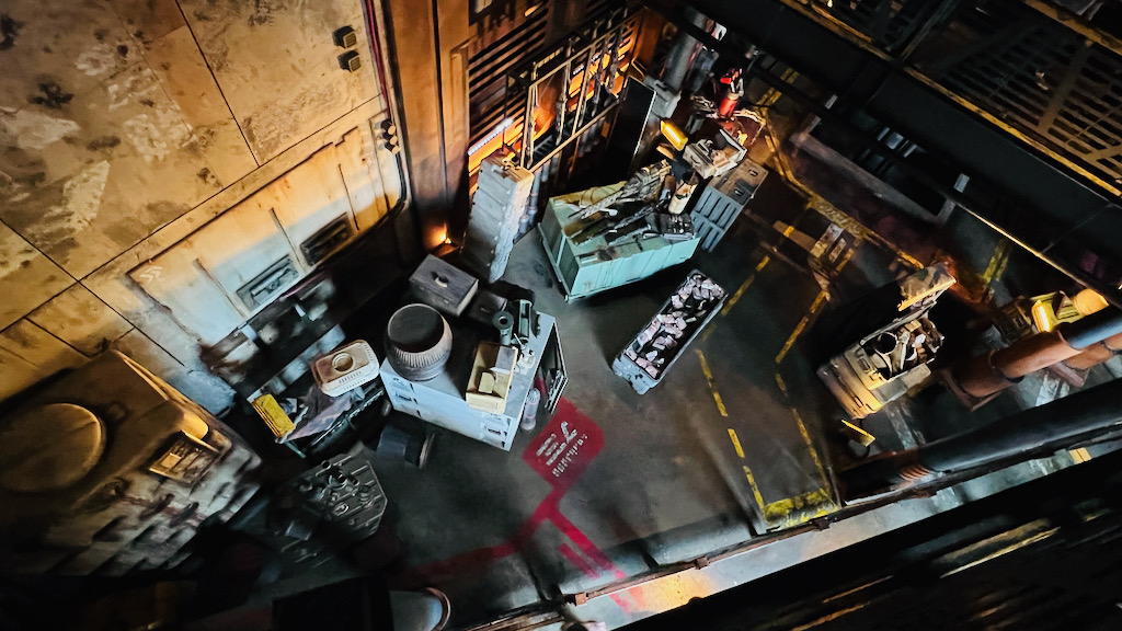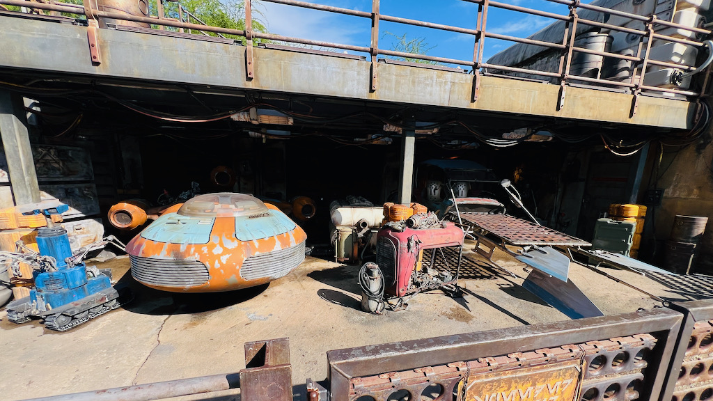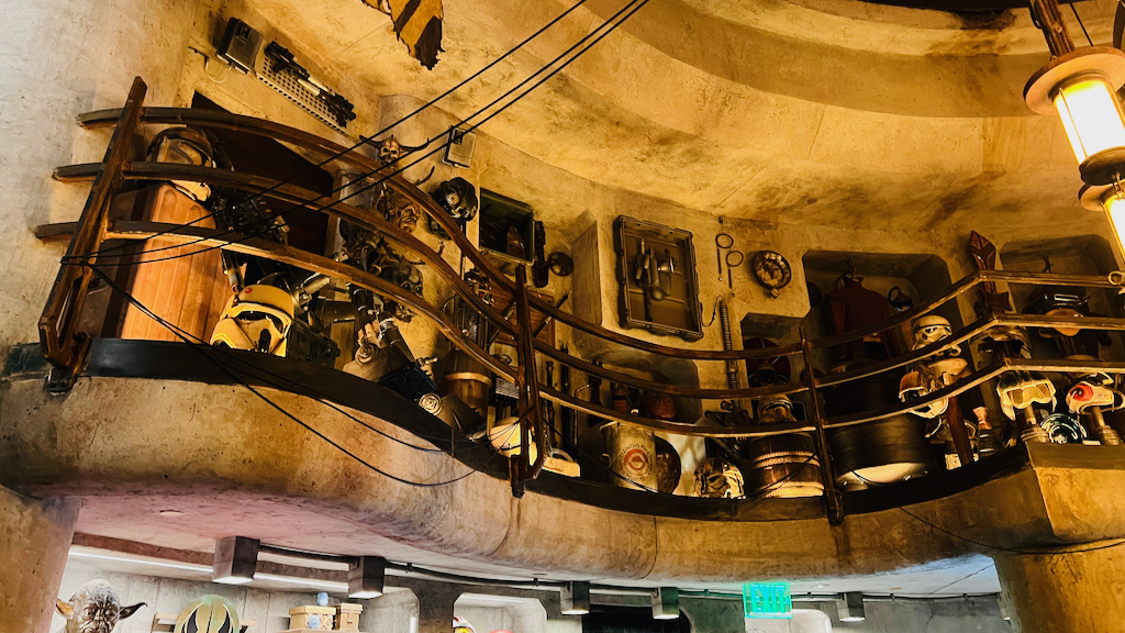 One thing I really appreciated is how much detail Disney put into every level of the space. You are not just meant to look straight ahead. You are supposed to look around, look up, and even look down. There are droid tracks, creature footprints, signs of activity, and all kinds of small thematic choices that reinforce the idea that this is a functioning place inside the Star Wars universe. Even something as simple as the trash cans being themed goes a long way in helping maintain the illusion.
