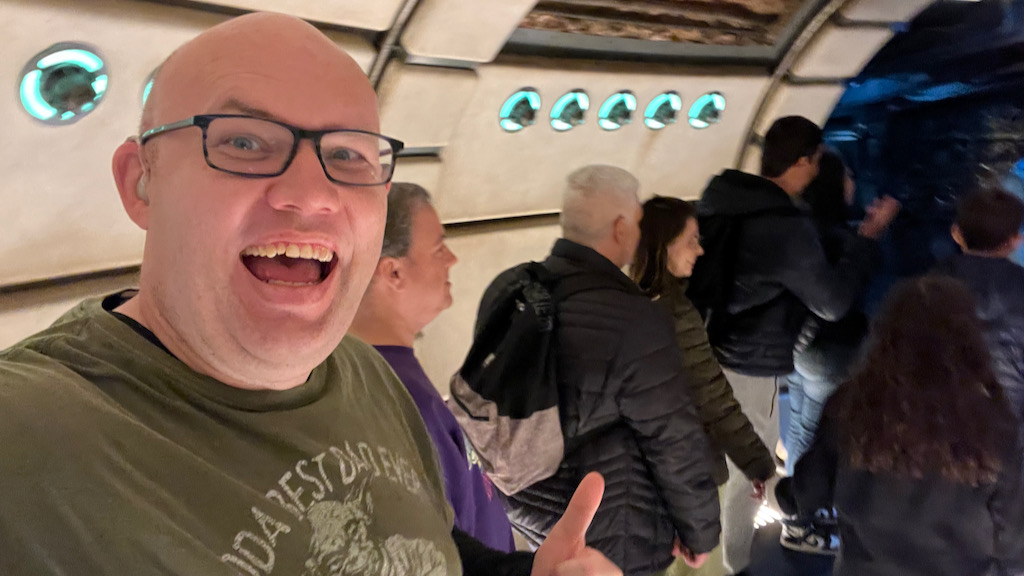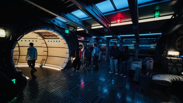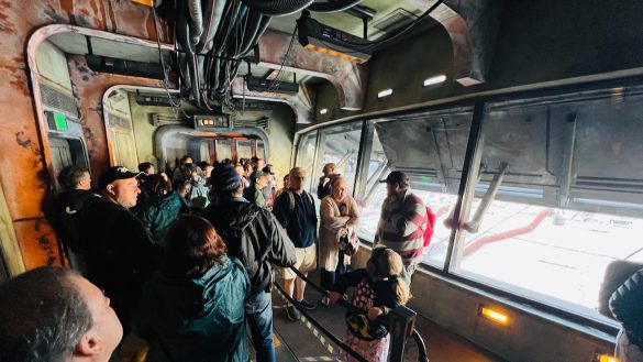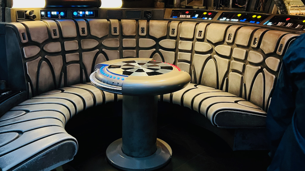 Seeing the interior and spotting the Dejarik table instantly taps into that Star Wars fan excitement. Even before the ride begins, just being in that space is an experience.