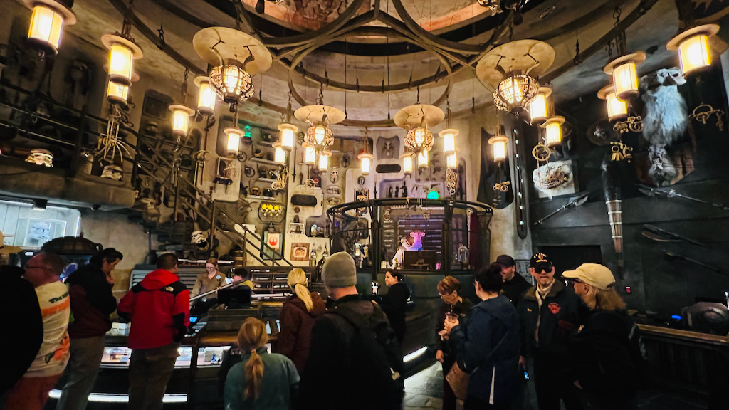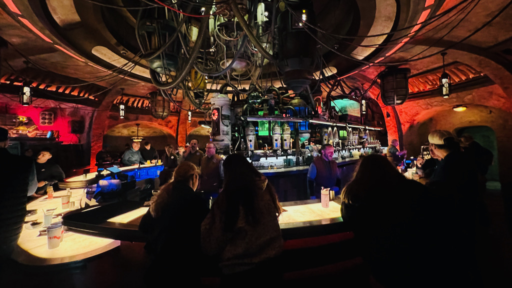 We also had the chance to check out Oga’s Cantina, which felt like one of those must-do experiences while visiting Black Spire Outpost. This is Batuu’s watering hole, a gathering spot for smugglers, bounty hunters, pilots, travelers, and locals. From the moment you step inside, it feels like you are in the middle of a Star Wars scene.