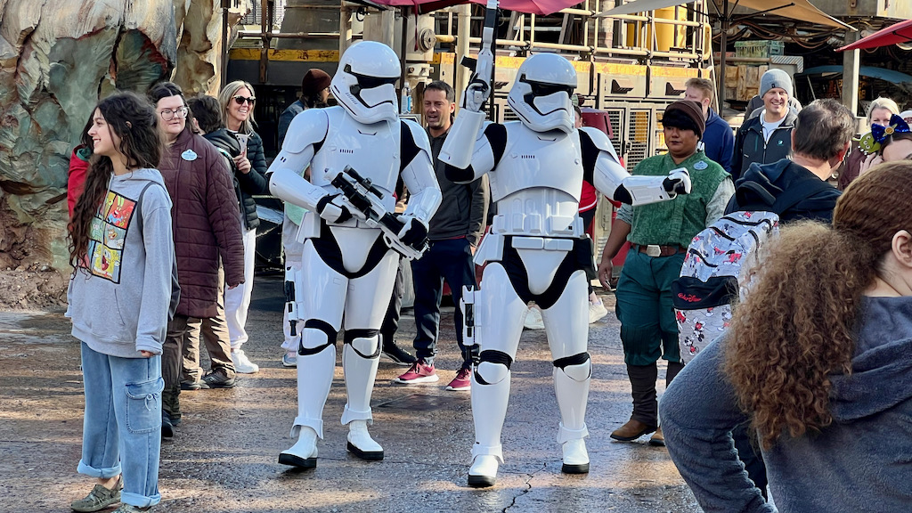 We got the chance to meet Mando and Grogu for the first time, which was a really fun surprise. We also met Rey, which was nice since I had previously met her on the Disney Wish with Chewbacca. Seeing Stormtroopers patrol the land and interact with other guests also added so much life to the experience. Those spontaneous character moments help the whole area feel active rather than static.