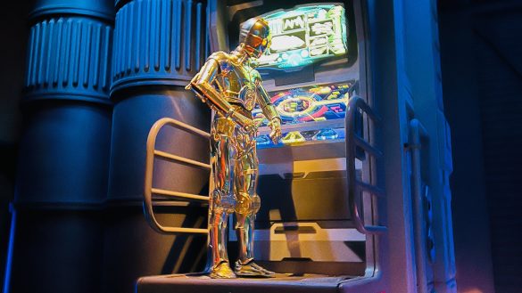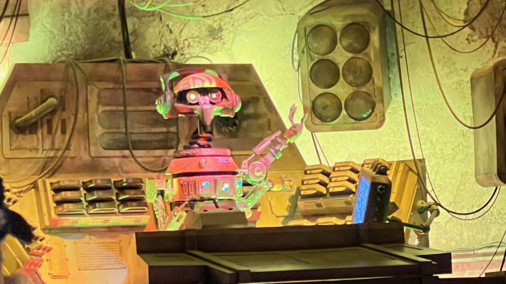 As you enter Star Tours, you are not just stepping into a ride queue. You are entering a spaceport terminal and preparing for an intergalactic trip. That whole setup still works really well. Seeing C-3PO and R2-D2 again instantly brings the attraction to life, and the cargo bay section of the queue still has plenty of fun details to notice.
