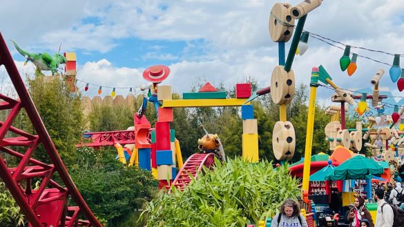 Toy Story Land does a really good job of selling the illusion that you have shrunk down to the size of a toy. The perspective tricks work well, and the whole land has an energetic, playful personality that stands in total contrast to the grounded realism of Galaxy’s Edge.