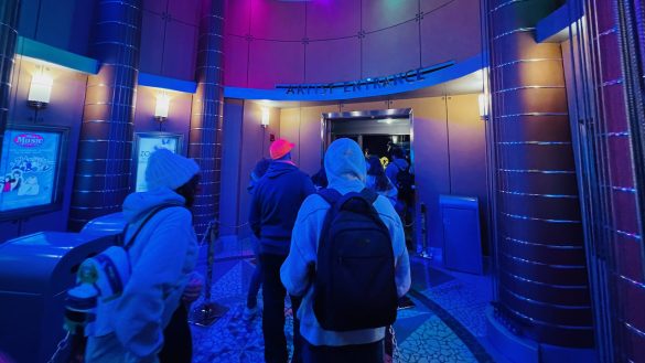 We especially wanted to ride it before it closed for refurbishment and before future changes fully take over. The queue is a mix of outdoor and indoor space, and while the outside portion is mostly just functional, things get more interesting once you move inside. You also get some nice views of The Twilight Zone Tower of Terror nearby, which is always fun.