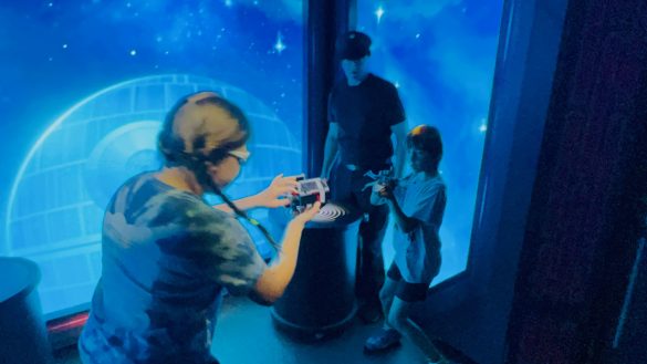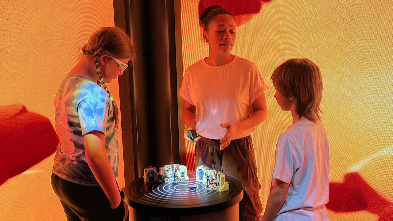You enter a giant LEGO brick (yes, really) and step into a transport pod before jumping through hyperspace to Tatooine and the Death Star. Along the way, interactive moments pull guests into the action.